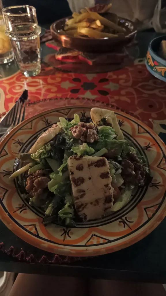 Such an amazing fit out with Moroccan carpets, had live traditional music and such yummy food. The prices are around the same anywhere you go in Marrakech. Would say it’s a must visit when staying here and we would go back over and over. Wasn’t very busy and wouldn’t need to book.