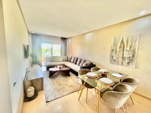 Marrakech Golf City Prestigia is a premium residential complex just 5 minutes from the airport and 2 km from the city center. It offers modern apartments and villas with pools, gardens, on-site dining, and direct access to The Montgomerie golf course.